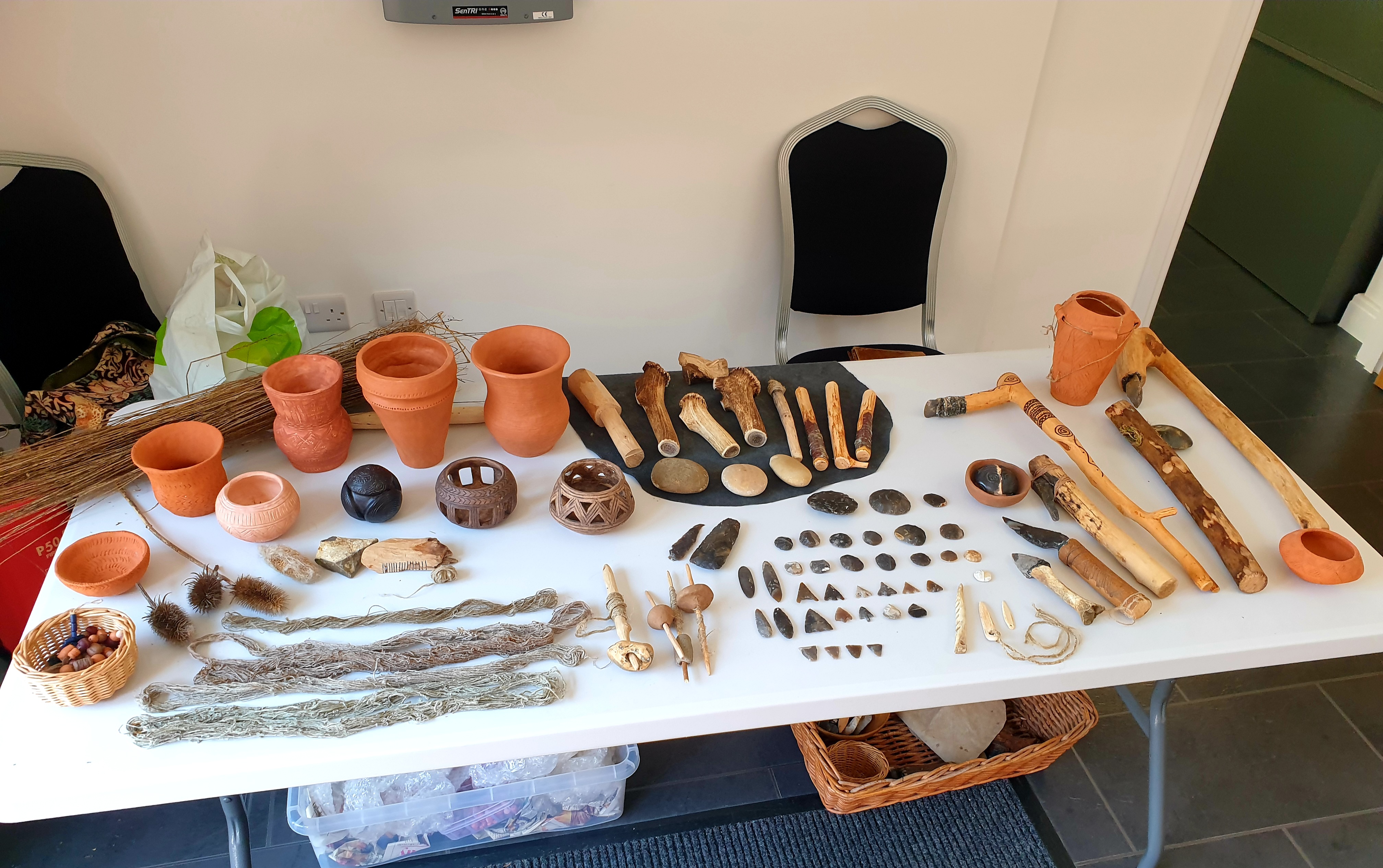 Broughton Astley Heritage Society, 3rd October 2023 – Talk: “Daily Life in Prehistoric Leicestershire” – an informal and conversational presentation taking the audience through the Mesolithic, Neolithic, Bronze Age and Iron Age periods using our replicas to show how tools were made and used.