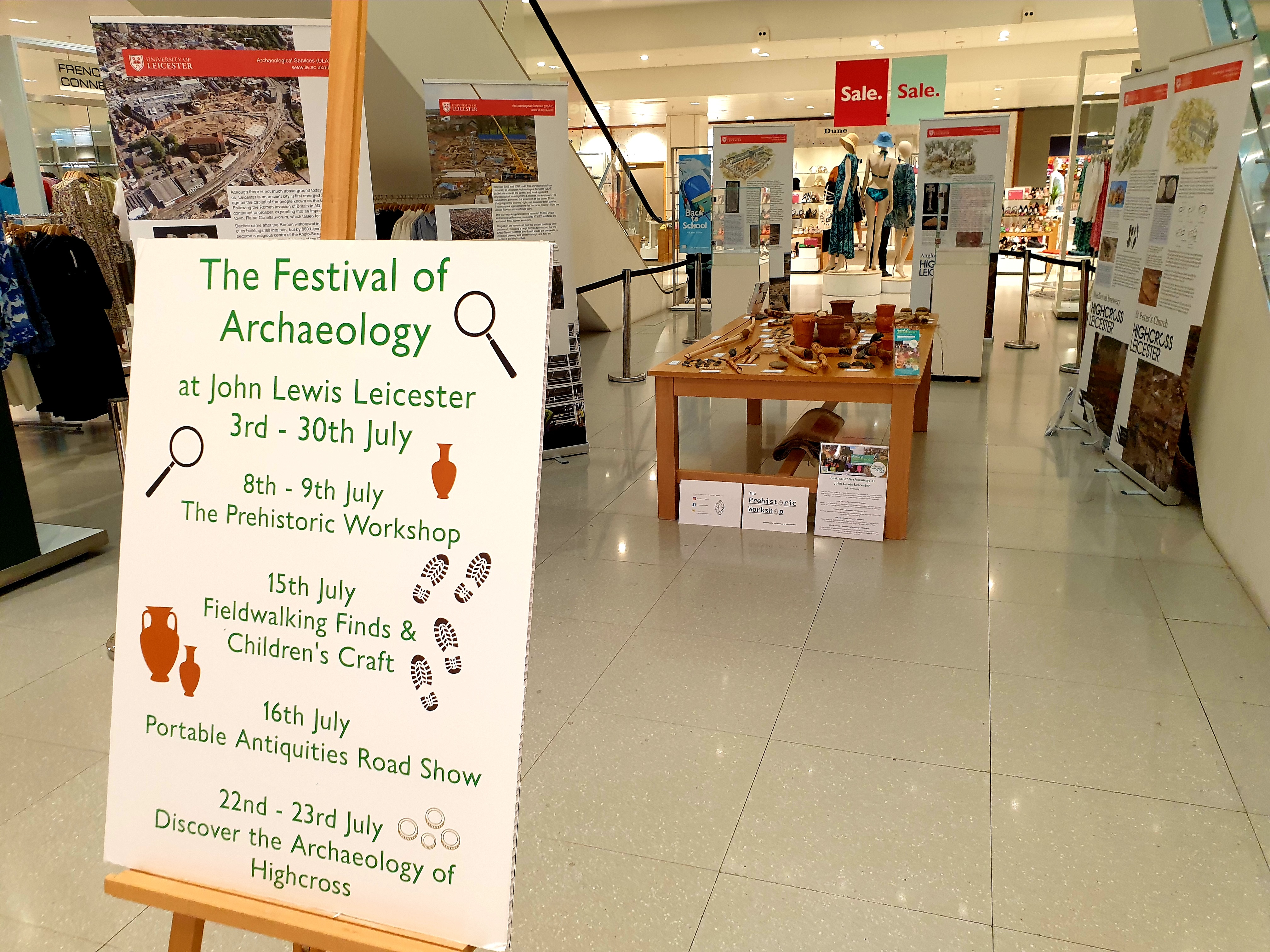 Festival of Archaeology event, John Lewis Leicester, 6th & 7th July 2024 – presentation of replicas and handling collection