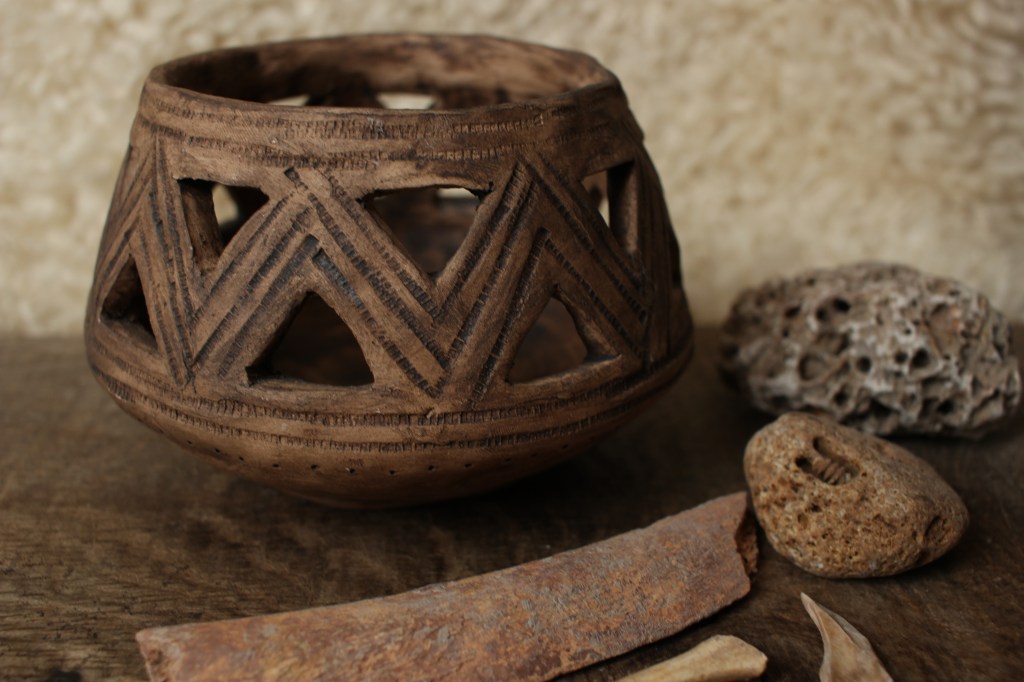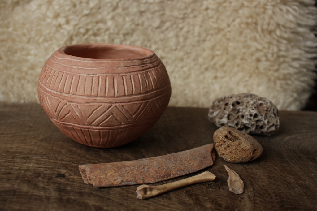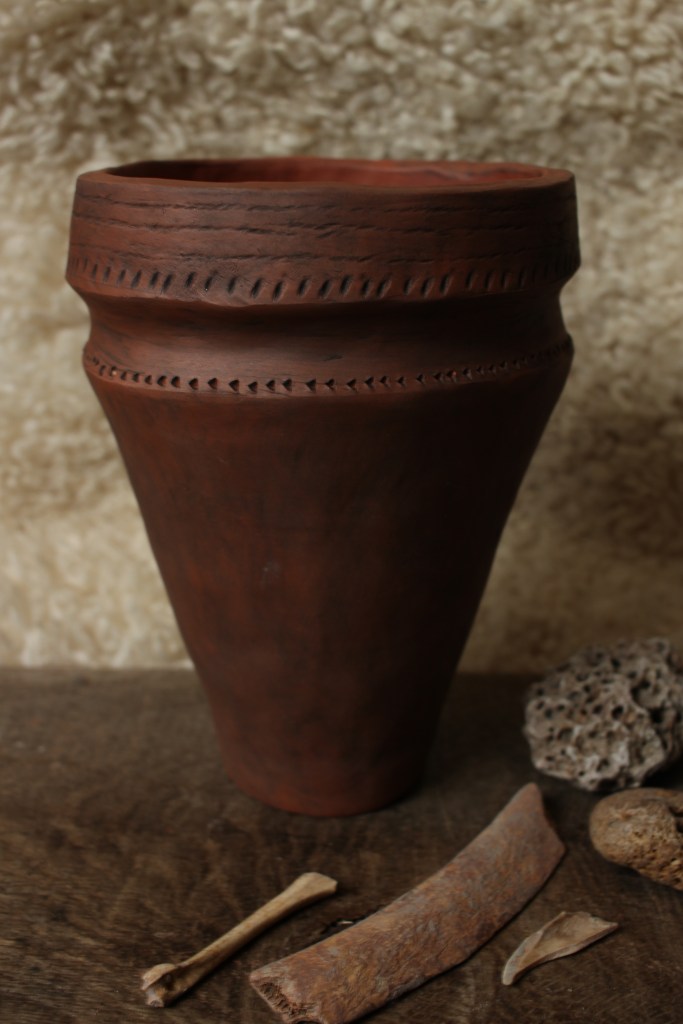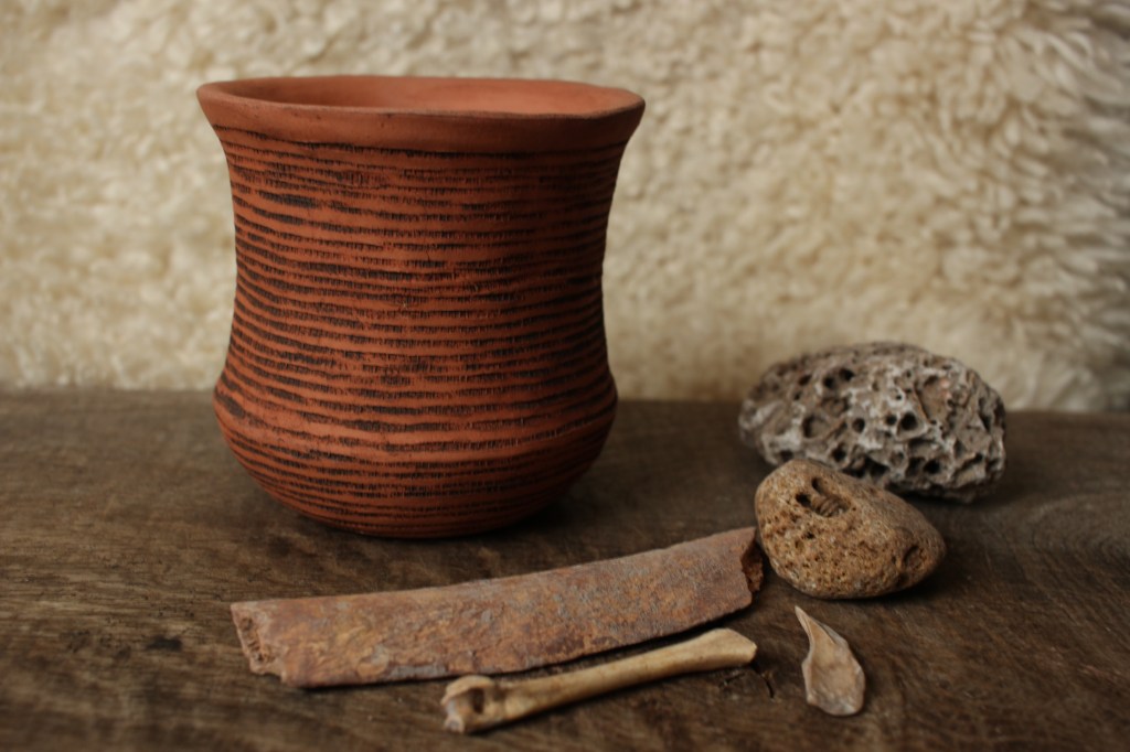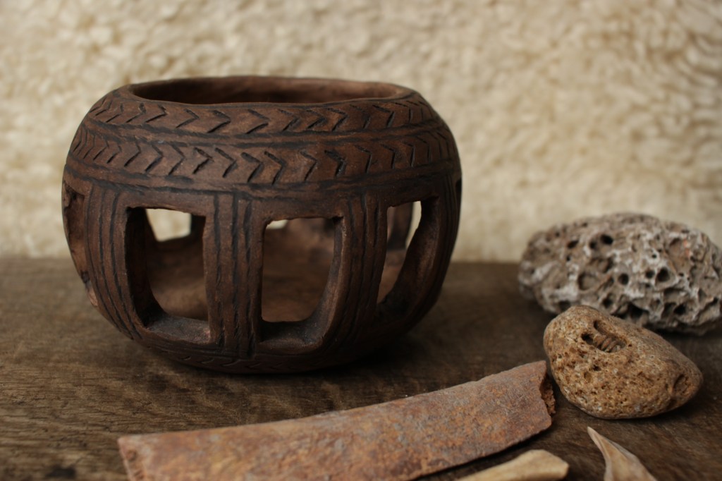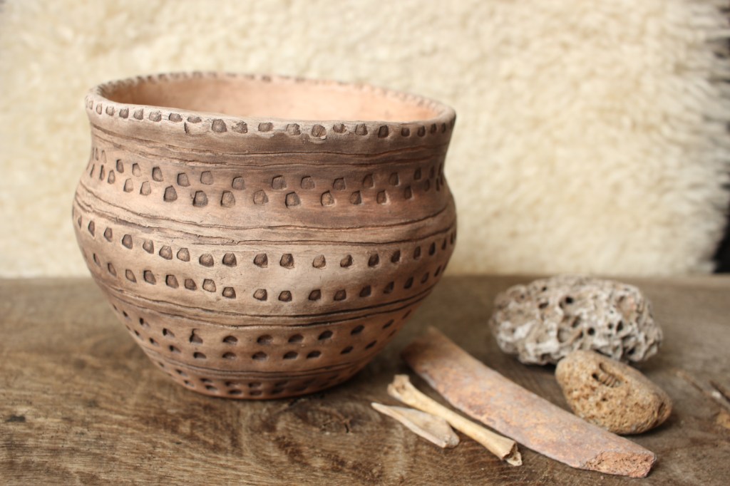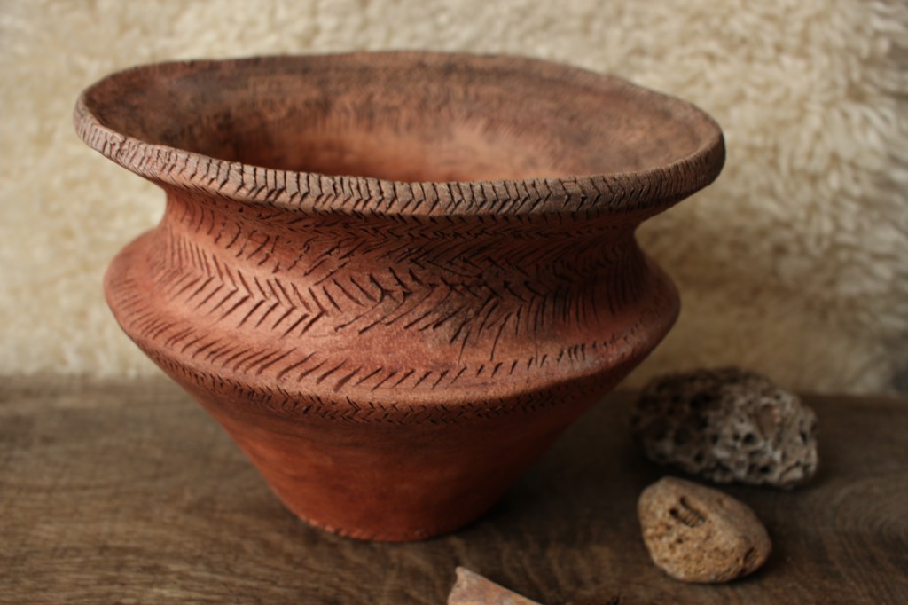 Here at The Prehistoric Workshop we create replicas of prehistoric pottery finds, as well as other ceramic objects such as spindle whorls, loom weights, beads, and ceramic versions of the neolithic stone carved balls found in Scotland. Some of our replicas are included in Leicestershire Museum’s handling collection. Below is a gallery of some of the pieces and some information about the originals. Workshops in pottery will be coming in Spring 2024.