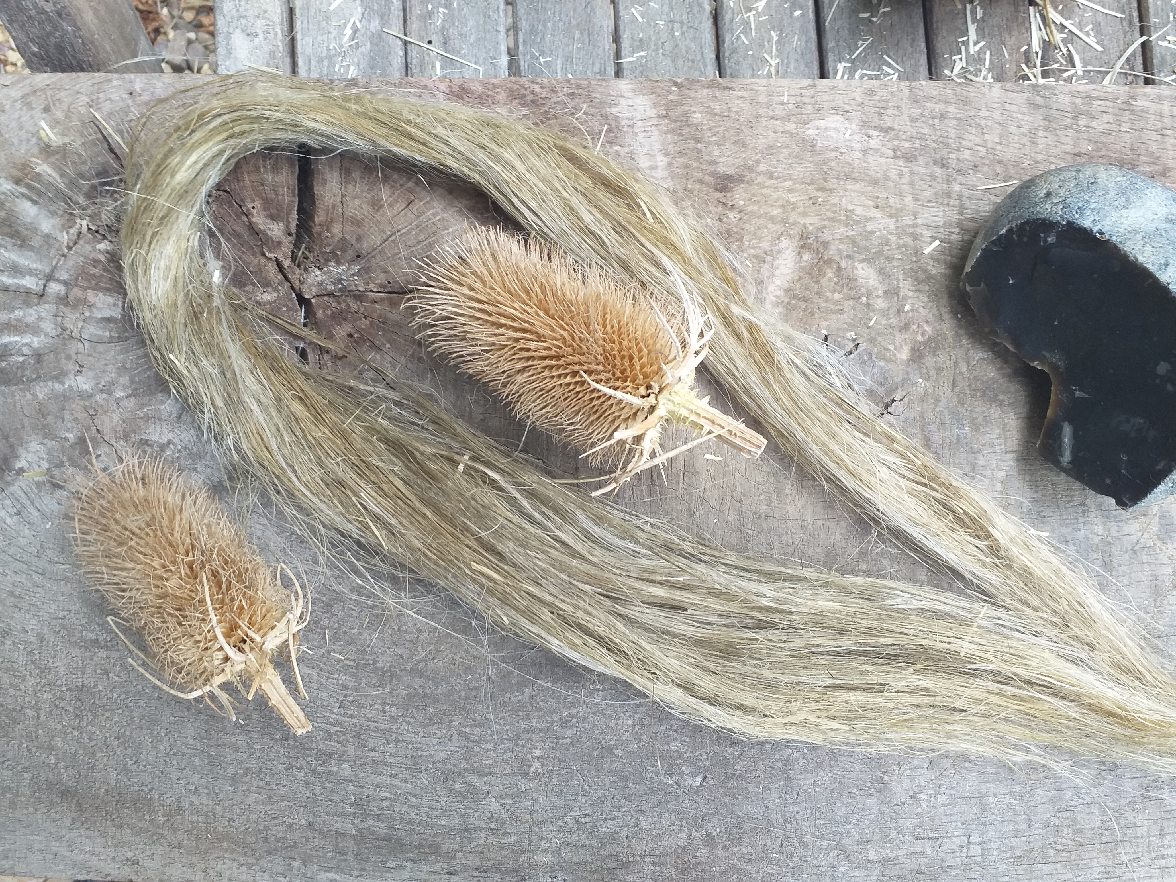 Flax Processing – The Ancient Way: a 2.5 hour session introducing you to the wonders of flax. You process your own bunch of dried flax and transform it into silky fibres ready for spinning. We explore the different methods of spinning flax yarn and cordage-making, from “on-the-leg” to using stone age replica spindles. We look at a warp-weighted loom and appreciate the ancient and unchanging methods that put clothes on our backs! You go home with your raw and spun fibres.